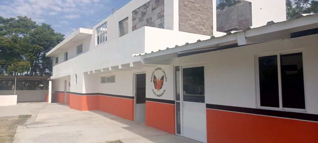 El Albergue fue construido, organizado y financiado para albergar y proporcionar alimentos a los migrantes en tránsito, con una estancia máxima de 4 noches.
